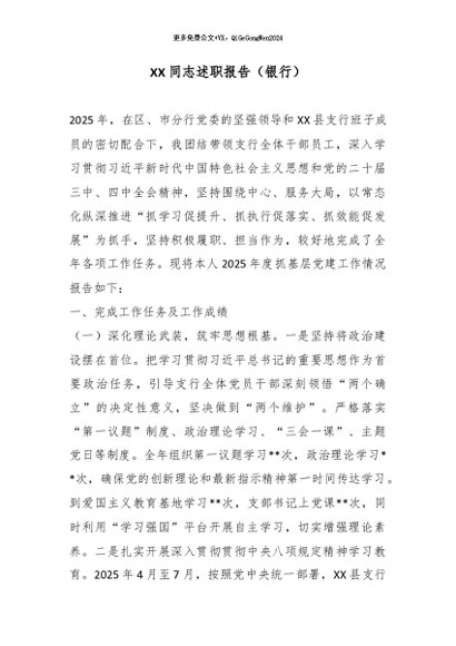 / 【七哥公文】2026年:XX同志述职报告(银行)_副本+更多免费公文+VX:QiGeGongWen2024