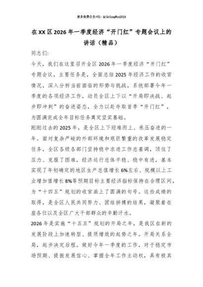【七哥公文】2026年:在XX区2026年一季度经济“开门红”专题会议上的讲话(精品)_副本+更多免费公文+VX:QiGeGongWen2024