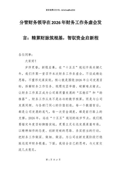 【七哥公文】2026年:分管财务领导在2026年财务工作务虚会发言:精算财脉筑根基,智驭资金启新程+更多免费公文+VX:QiGeGongWen2024