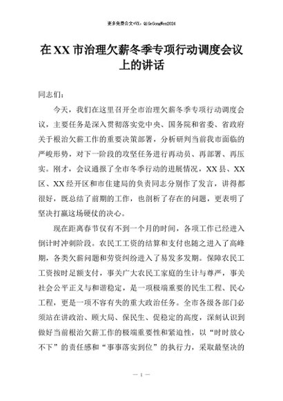 / 【七哥公文】2026年:在XX市治理欠薪冬季专项行动调度会议上的讲话+更多免费公文+VX:QiGeGongWen2024