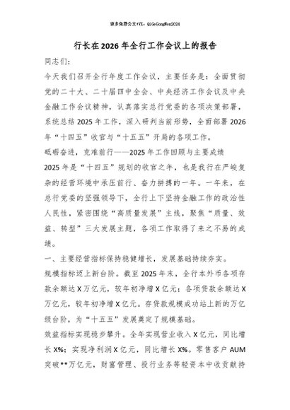 / 【七哥公文】2026年:行长在2026年全行工作会议上的报告_副本+更多免费公文+VX:QiGeGongWen2024
