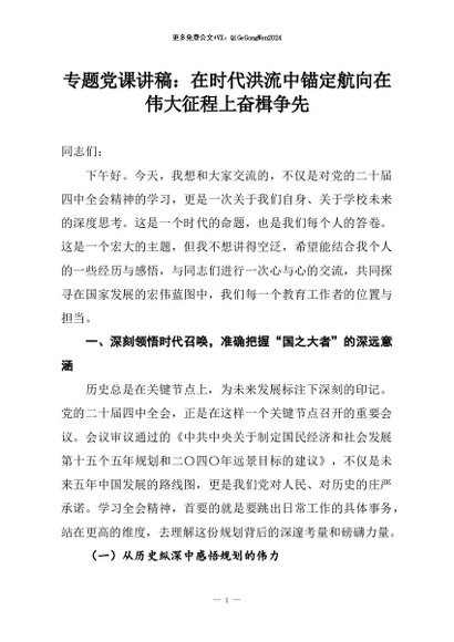 【七哥公文】2026年:专题党课讲稿:在时代洪流中锚定航向在伟大征程上奋楫争先+更多免费公文+VX:QiGeGongWen2024