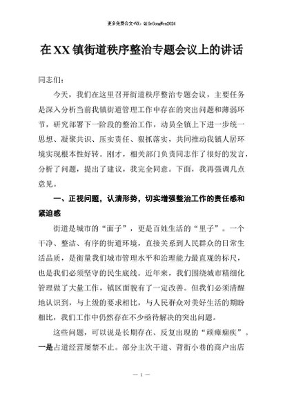 / 【七哥公文】2026年:在XX镇街道秩序整治专题会议上的讲话+更多免费公文+VX:QiGeGongWen2024