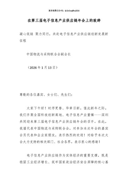 / 【七哥公文】2026年:在第三届电子信息产业供应链年会上的致辞_副本+更多免费公文+VX:QiGeGongWen2024