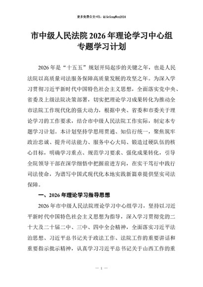【七哥公文】2026年:市中级人民法院2026年理论学习中心组专题学习计划+更多免费公文+VX:QiGeGongWen2024
