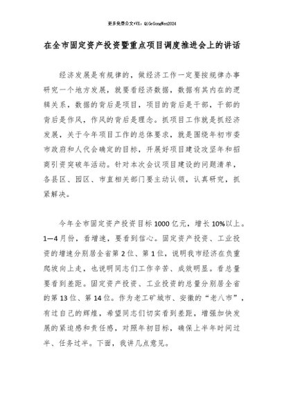 【七哥公文】2026年:在全市固定资产投资暨重点项目调度推进会上的讲话_副本+更多免费公文+VX:QiGeGongWen2024