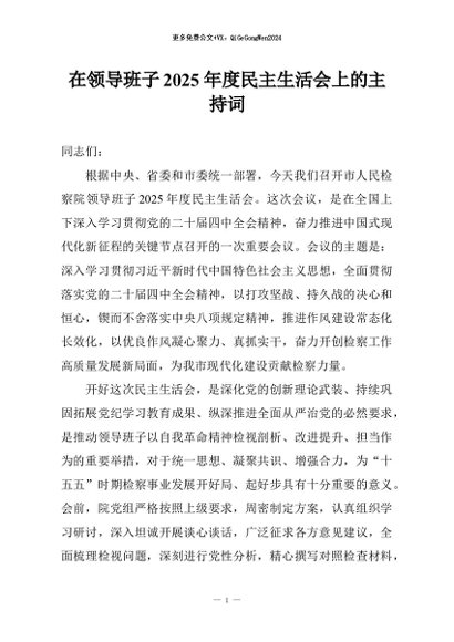 / 【七哥公文】2026年:在领导班子2025年度民主生活会上的主持词+更多免费公文+VX:QiGeGongWen2024