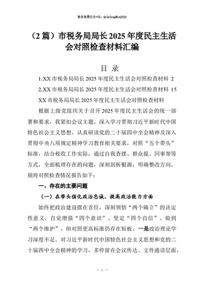 【七哥公文】2026年:(2篇)市税务局局长2025年度民主生活会对照检查材料汇编+更多免费公文+VX:QiGeGongWen2024