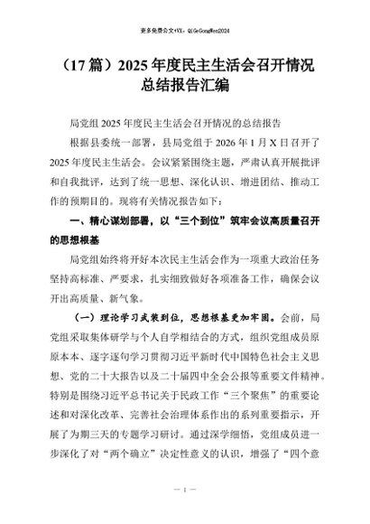 【七哥公文】2026年:(17篇)2025年度民主生活会召开情况总结报告汇编+更多免费公文+VX:QiGeGongWen2024