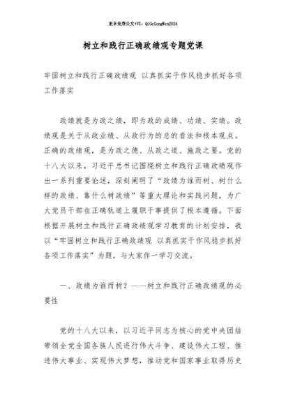 【七哥公文】2026年:树立和践行正确政绩观专题党课+更多免费公文+VX:QiGeGongWen2024