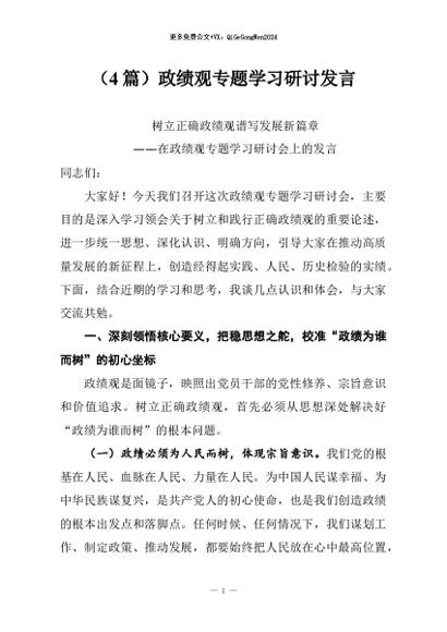 【七哥公文】2026年:(4篇)政绩观专题学习研讨发言+更多免费公文+VX:QiGeGongWen2024