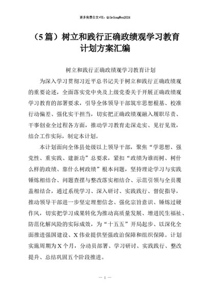 【七哥公文】2026年:(5篇)树立和践行正确政绩观学习教育计划方案汇编+更多免费公文+VX:QiGeGongWen2024