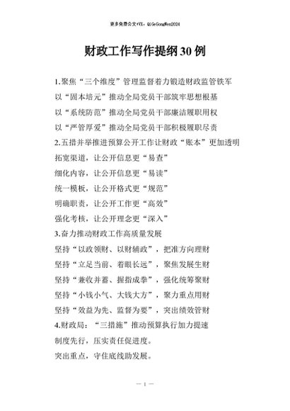 【七哥公文】2026年:财政工作写作提纲30例+更多免费公文+VX:QiGeGongWen2024