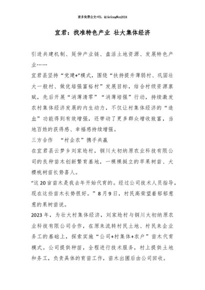 【七哥公文】2026年:宜君:找准特色产业 壮大集体经济_副本+更多免费公文+VX:QiGeGongWen2024