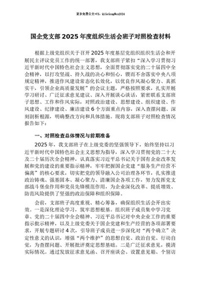【七哥公文】2026年:国企党支部2025年度组织生活会班子对照检查材料(精选)_副本+更多免费公文+VX:QiGeGongWen2024