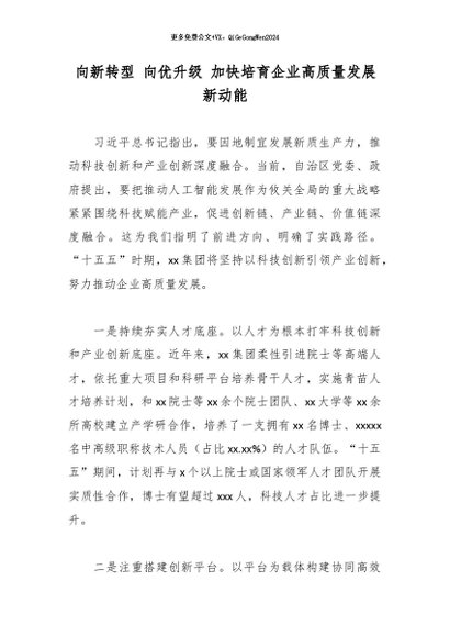 【七哥公文】2026年:向新转型 向优升级 加快培育企业高质量发展新动能_副本+更多免费公文+VX:QiGeGongWen2024