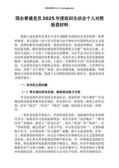 【七哥公文】2026年:国企普通党员2025年度组织生活会个人对照检查材料_副本+更多免费公文+VX:QiGeGongWen2024