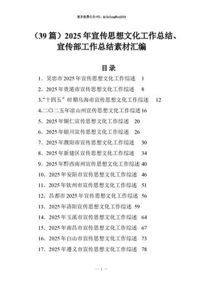 【七哥公文】2026年:(39篇)2025年宣传思想文化工作总结、宣传部工作总结素材汇编+更多免费公文+VX:QiGeGongWen2024