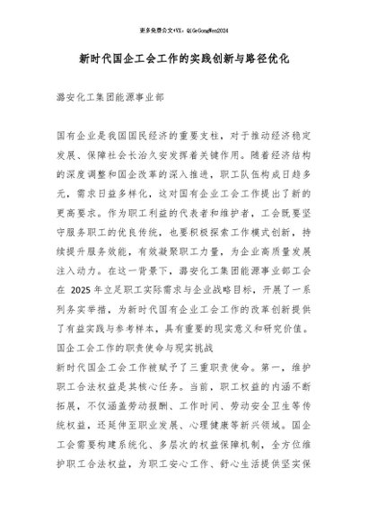/ 【七哥公文】2026年:新时代国企工会工作的实践创新与路径优化_副本+更多免费公文+VX:QiGeGongWen2024