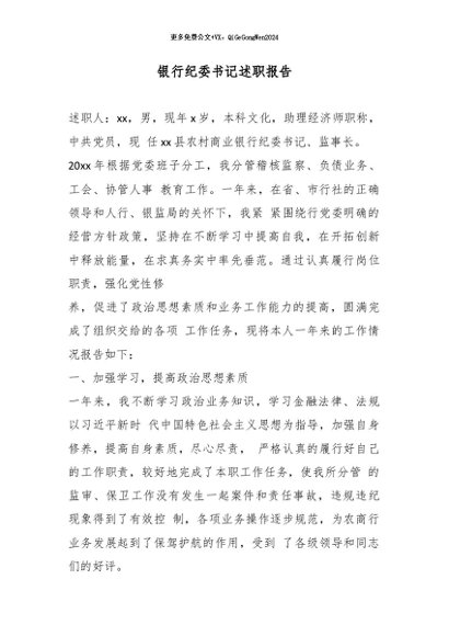 / 【七哥公文】2026年:银行纪委书记述职报告_副本+更多免费公文+VX:QiGeGongWen2024