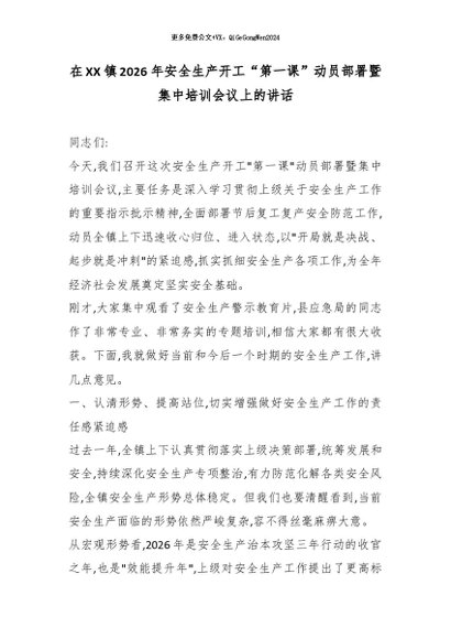 【七哥公文】2026年:在XX镇2026年安全生产开工“第一课”动员部署暨集中培训会议上的讲话_副本+更多免费公文+VX:QiGeGongWen2024