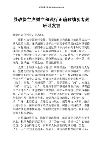/ 【七哥公文】2026年:县政协主席树立和践行正确政绩观专题研讨发言+更多免费公文+VX:QiGeGongWen2024
