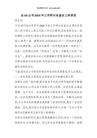 【七哥公文】2026年:在XX公司2026年工作研讨务虚会上的讲话_副本+更多免费公文+VX:QiGeGongWen2024