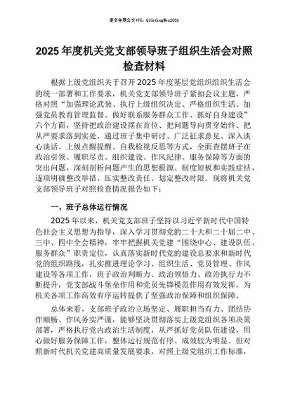 【七哥公文】2026年:2025年度机关党支部领导班子组织生活会对照检查材料+更多免费公文+VX:QiGeGongWen2024