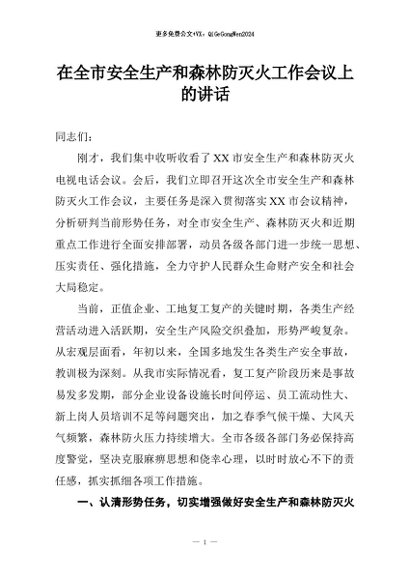 / 【七哥公文】2026年:在全市安全生产和森林防灭火工作会议上的讲话+更多免费公文+VX:QiGeGongWen2024