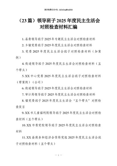 【七哥公文】2026年:(23篇)领导班子2025年度民主生活会对照检查材料汇编+更多免费公文+VX:QiGeGongWen2024