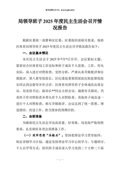 / 【七哥公文】2026年:局领导班子2025年度民主生活会召开情况报告+更多免费公文+VX:QiGeGongWen2024