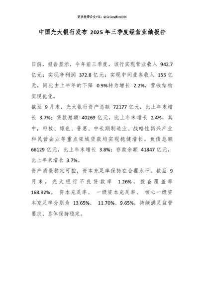 【七哥公文】2026年:中国光大银行发布 2025 年三季度经营业绩报告_副本+更多免费公文+VX:QiGeGongWen2024