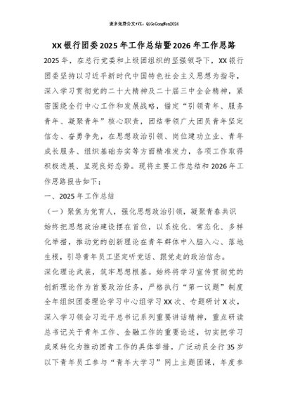 【七哥公文】2026年:XX银行团委2025年工作总结暨2026年工作思路_副本+更多免费公文+VX:QiGeGongWen2024