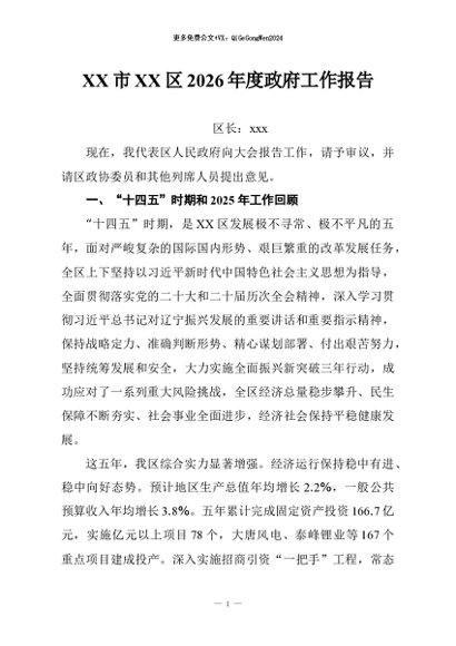 / 【七哥公文】2026年:XX市XX区2026年度政府工作报告+更多免费公文+VX:QiGeGongWen2024