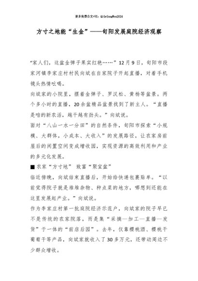 【七哥公文】2026年:方寸之地能“生金”——旬阳发展庭院经济观察_副本+更多免费公文+VX:QiGeGongWen2024