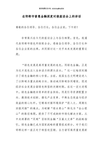 【七哥公文】2026年:邯郸市绿色在邯郸市普惠金融深度对接座谈会上的讲话_副本+更多免费公文+VX:QiGeGongWen2024