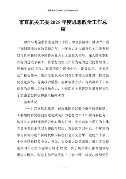 / 【七哥公文】2026年:市直机关工委2025年度思想政治工作总结+更多免费公文+VX:QiGeGongWen2024