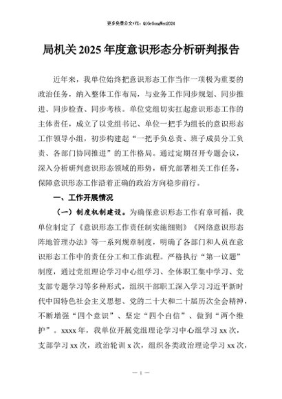 / 【七哥公文】2026年:局机关2025年度意识形态分析研判报告+更多免费公文+VX:QiGeGongWen2024