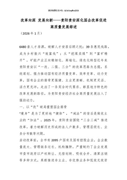 【七哥公文】2026年:改革向深 发展向新——贵阳贵安深化国企改革促进高质量发展综述_副本+更多免费公文+VX:QiGeGongWen2024