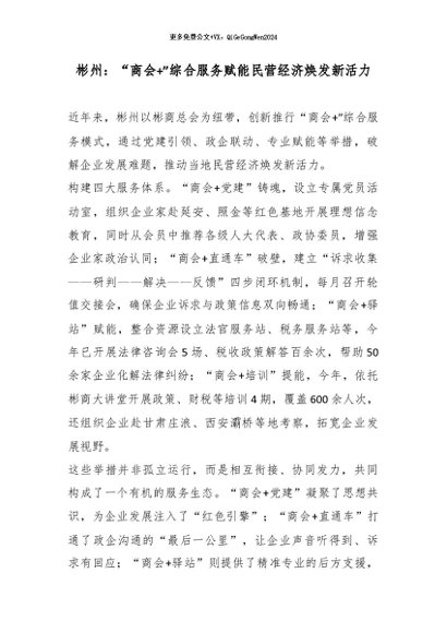【七哥公文】2026年:彬州:“商会+”综合服务赋能民营经济焕发新活力_副本+更多免费公文+VX:QiGeGongWen2024