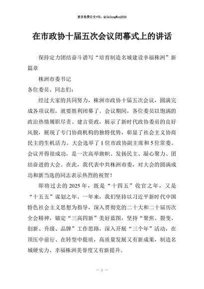 / 【七哥公文】2026年:在市政协十届五次会议闭幕式上的讲话+更多免费公文+VX:QiGeGongWen2024