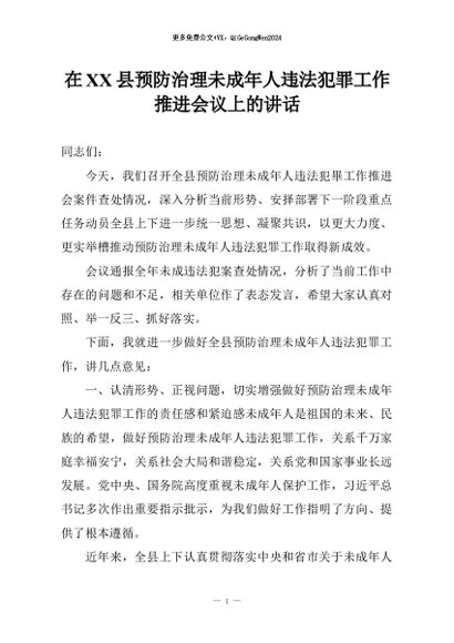 【七哥公文】2026年:在XX县预防治理未成年人违法犯罪工作推进会议上的讲话+更多免费公文+VX:QiGeGongWen2024 - 七哥-AI智库