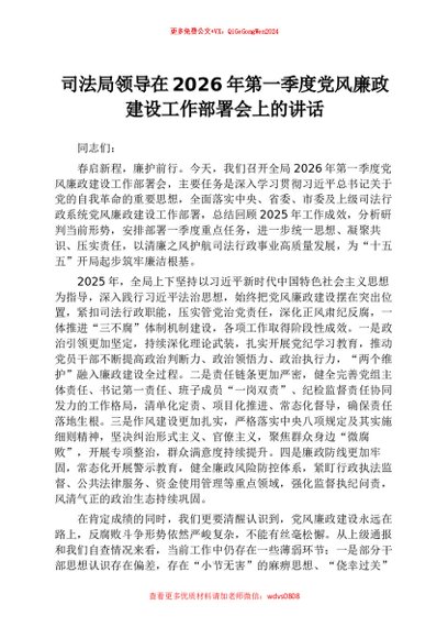 【七哥公文】2026年:司法局领导在2026年第一季度党风廉政建设工作部署会上的讲话+更多免费公文+VX:QiGeGongWen2024