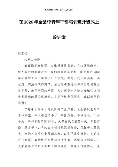 / 【七哥公文】2026年:在2026年全县中青年干部培训班开班式上的讲话+更多免费公文+VX:QiGeGongWen2024