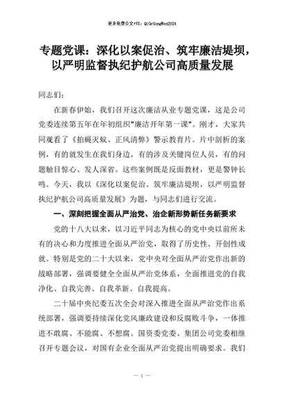 【七哥公文】2026年:专题党课:深化以案促治、筑牢廉洁堤坝,以严明监督执纪护航公司高质量发展+更多免费公文+VX:QiGeGongWen2024