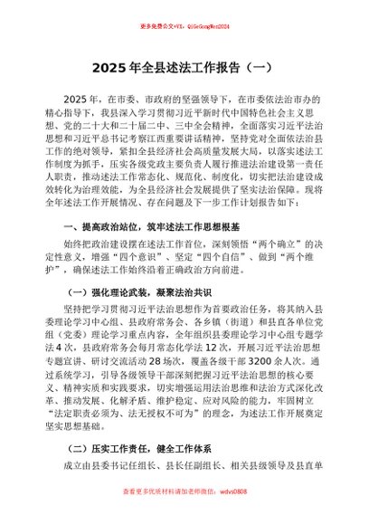 【七哥公文】2026年:2025年全县述法工作报告(一)+更多免费公文+VX:QiGeGongWen2024