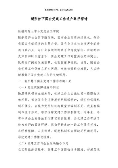 / 【七哥公文】2026年:新形势下国企党建工作提升路径探讨_副本+更多免费公文+VX:QiGeGongWen2024