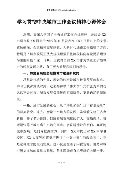 【七哥公文】2026年:学习贯彻中央城市工作会议精神心得体会+更多免费公文+VX:QiGeGongWen2024