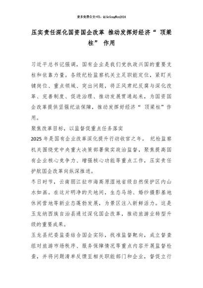 【七哥公文】2026年:压实责任深化国资国企改革 推动发挥好经济“ 顶梁柱” 作用_副本+更多免费公文+VX:QiGeGongWen2024