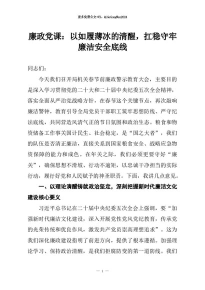 【七哥公文】2026年:廉政党课:以如履薄冰的清醒,扛稳守牢廉洁安全底线+更多免费公文+VX:QiGeGongWen2024